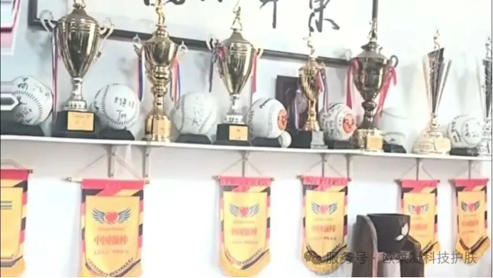 从门口到墙角,满满一屋子的奖杯、奖牌、证书,堆得密密麻麻,金光闪闪的荣誉几乎要溢出来。有全国青少年棒球锦标赛的冠军奖杯,有国家级赛事的金牌,甚至还有代表中国出征世界级青少年棒球锦标赛时,捧回来的沉甸甸的奖牌。